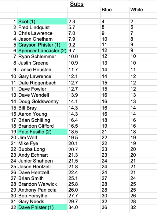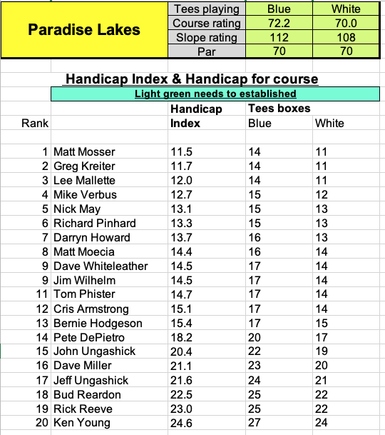If golfer's name is highlighted in green that means they need more scores in order to establish a handicap.